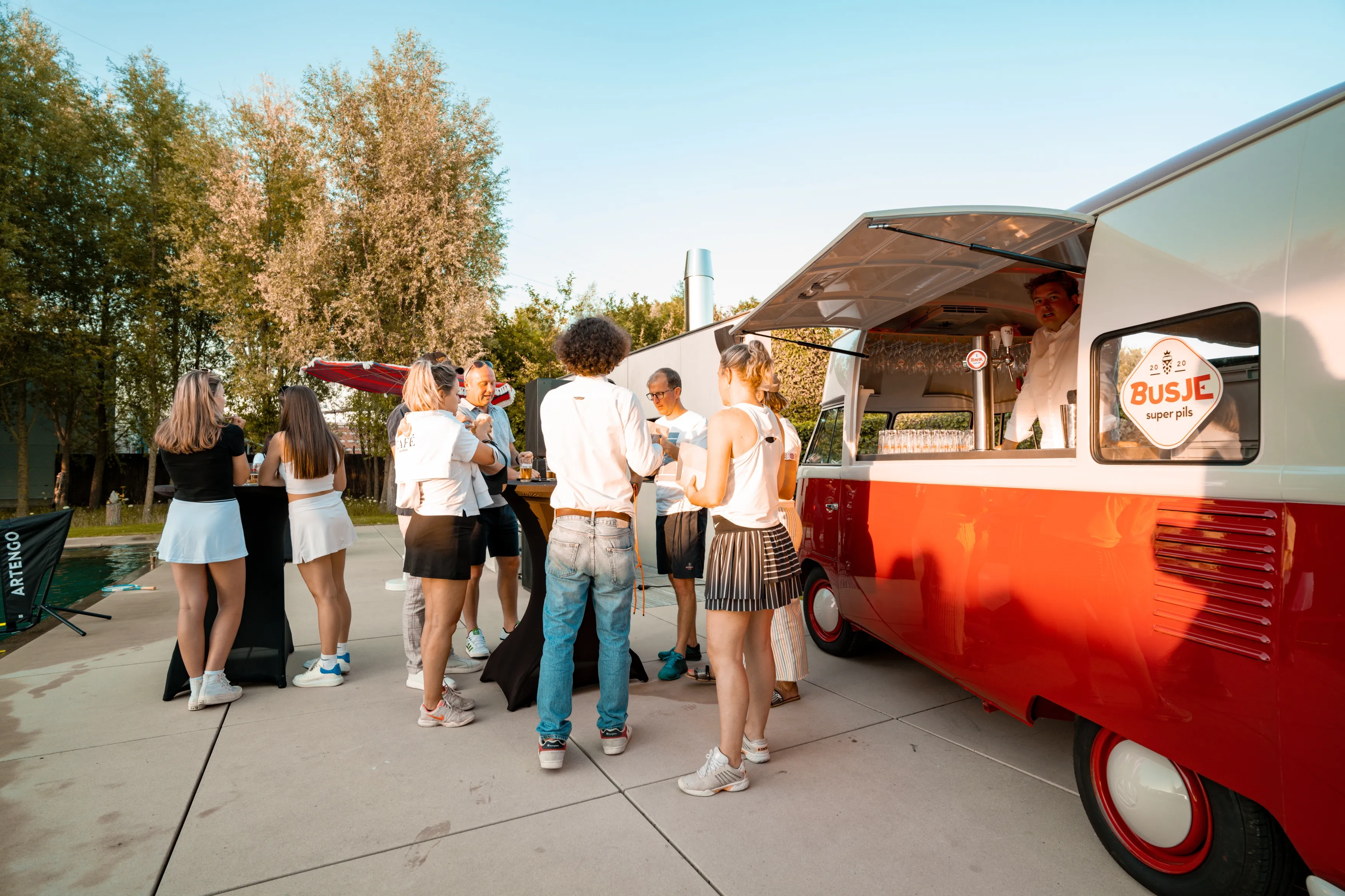 Het resultaat? Jij hoeft je nergens druk om te maken en je gasten praten nog weken over dat charmante busje dat hun dorst kwam lessen. Het verschil zit in de details. Toch?